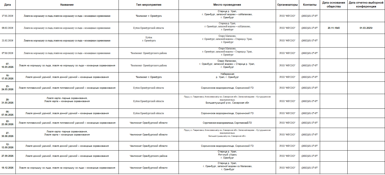 Планы спортивных соревнований, фестивалей и другая информация для рыболовов любителей и спортсменов: