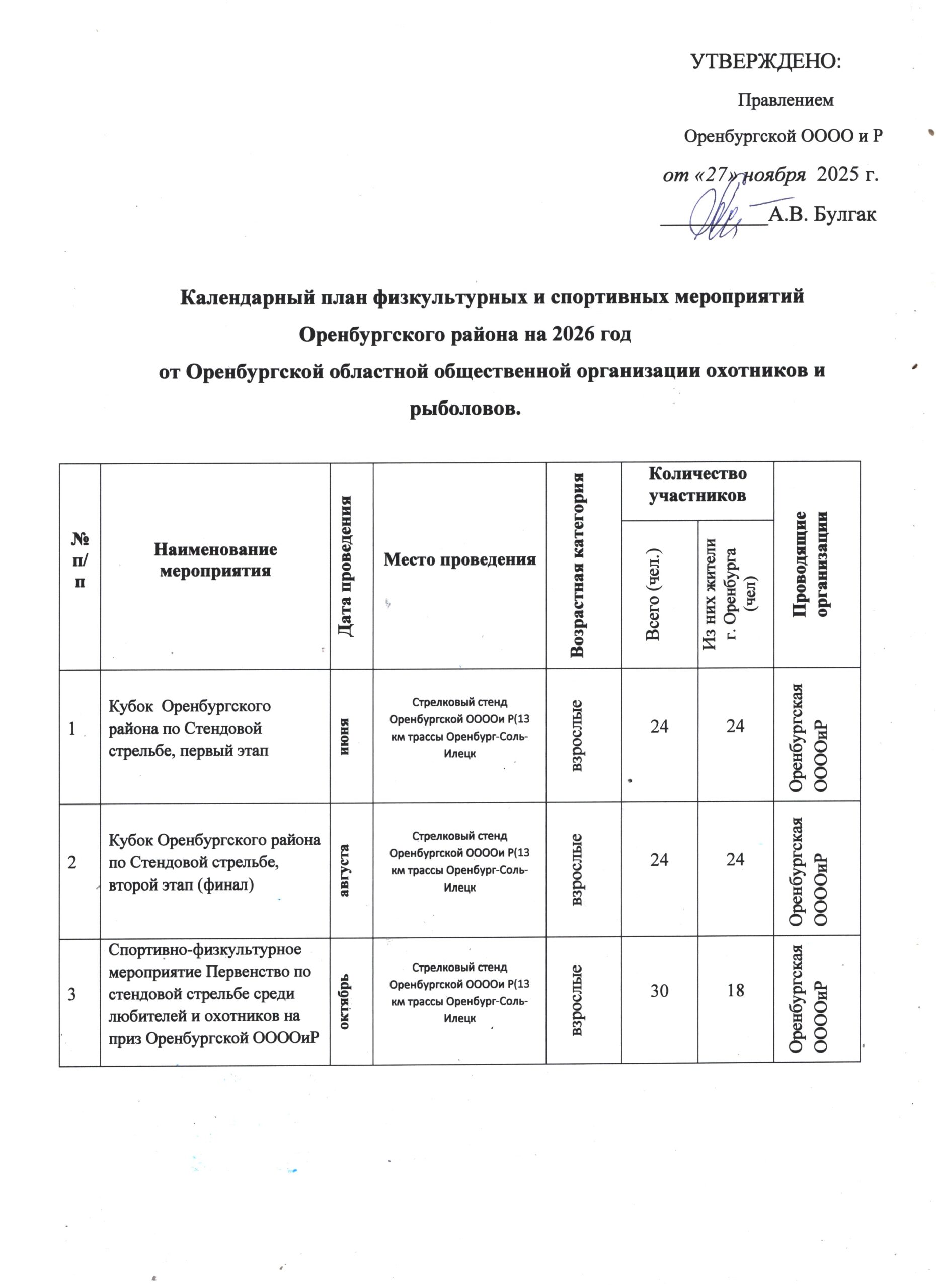 Мероприятия 2026 г. по стендовой стрельбе в г. Оренбург: